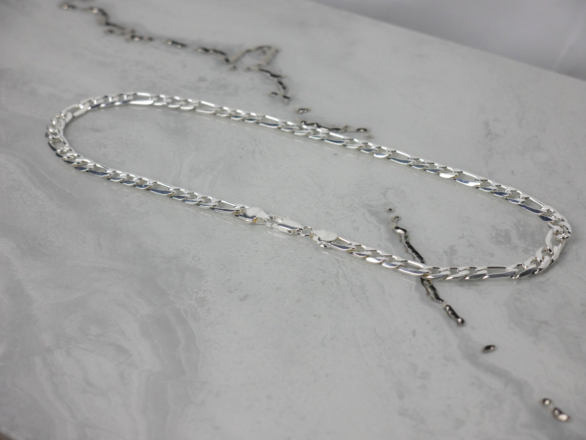 With a versatile width that strikes the perfect balance between subtlety and statement, our 925 Sterling Silver Figaro Chain is suitable for various occasions. Whether you're dressing up for a formal event or adding a touch of elegance to your casual ensemble, this chain effortlessly complements your style with timeless grace.