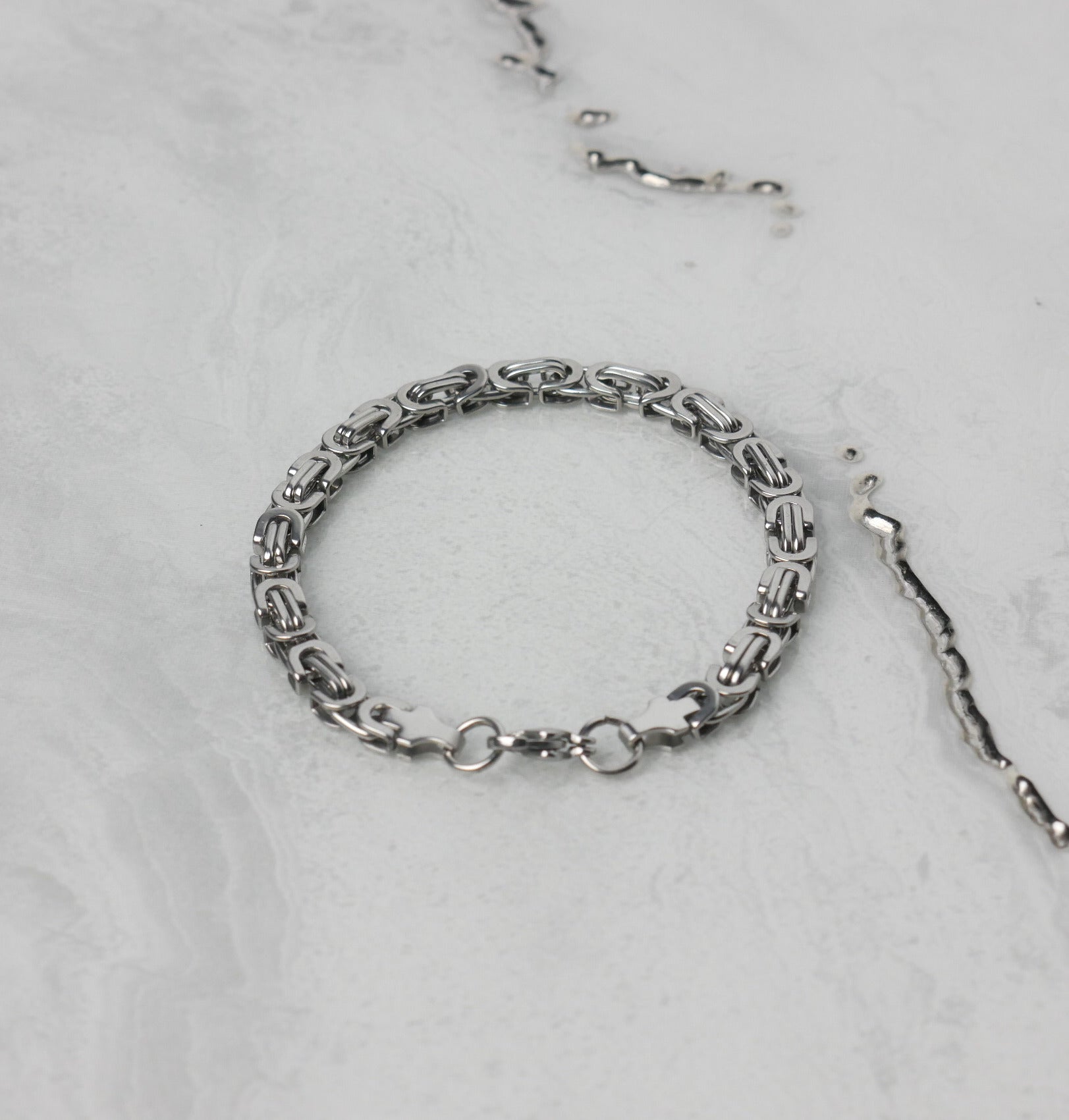 The timeless and versatile design of the Flat Byzantine Bracelet allows it to effortlessly enhance both casual and formal looks. Whether you're dressing up for a special occasion or adding a touch of elegance to your everyday style, this bracelet is sure to make a bold and refined statement.